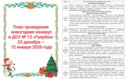 План проведения новогодних каникул в ДОУ № 12 «Голубок» 23 декабря – 12 января 2026 года